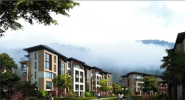 綠道聯合在本案的設計中,將項目定位為世界級山地溫泉養生棲息地。方案規劃與建筑的原則是先有“景”,再有“觀”——先有“涵谷” 八景、“四洲”、“四谷”,再有觀景的仙居八境“風花雪月”、“ 詩詞歌賦” 。在建筑設計方面,塑造新亞洲建筑風情,戶戶生態全景,戶戶溫泉入室,產品包括單層、雙層養生別墅、四層電梯假日公寓、四層一梯四戶墅景公寓、三層花園洋房以及五星級產權式度假酒店等,構成一個豐富的中式住宅體系,營造一片風花雪月的人間仙境。