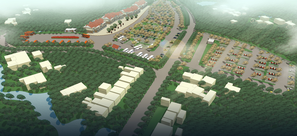 建筑設計主要采用簡歐風格,遵循“尊重自然、綠色生態、建筑風貌、景觀營造、可持續發展、低碳環保”的原則,布置在景區主干道右側和左側部分地塊,主要滿足大巴、中巴、小車、電瓶車以及回遷居民住宅。規劃區停車場設有四個車行主要出入口,其中兩個主要滿足停車場內部車輛進出,一個滿足電瓶車出入停車場,一個滿足回遷建筑出入。建筑前廣場主要考慮人流集散,后庭院主要突出景觀營造,通過對商業零售、回遷居住、景區服務、汽車維修等配套商業設施的建設滿足游客游覽需求。