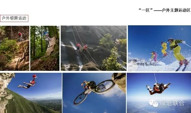 1、戶外極限運動——依托豐富的地形地貌,開展刺激的極限運動,如滑雪、攀巖、速降、溯溪、跳傘、山地自行車、山地摩托、山地越野、滑翔傘、定向運動、蹦極、拓展訓練等。