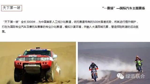 生態(tài)觀光綠道、初級體驗賽道、天下第一坡、國際越野賽道、品牌試駕基地、賽事觀看場館等。