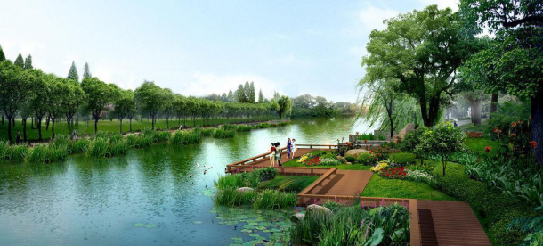 ● 以自然式手法打造景觀岸線,結合親水平臺、木質廊道等營造生態和諧的濱水景觀。