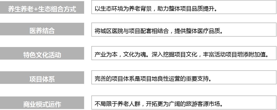 養生養老項目成功開發的關鍵因素主要包括五個方面: