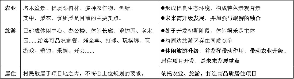 “農業”、“旅游”發展已具備一定基礎。但有待提升,并帶動“居住”發展。